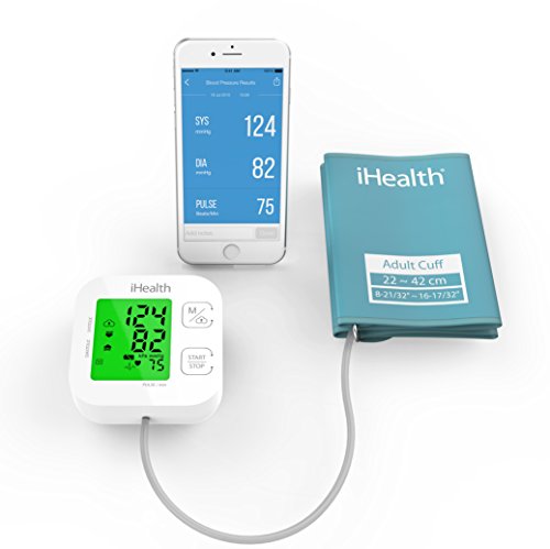 -. Feature : Vollautomatische Messung des Blutdrucks (systolisch und diastolisch) und der Herzfrequenz (Anzahl der Herzschläge pro Minute) / Messergebnisse werden direkt auf dem Display angezeigt und zusätzlich per einfachen Knopfdruck in die kostenlosen iHealth MyVitals App übertragen / Automatische Arrhythmie-Erkennung / Display wechselt je nach Messergebiss die Farbe: Rot bei erhöhtem Blutdruck, Gelb bei leicht erhöht und Grün bei normal / optimal / Universal-Manschette für Oberarmumfänge 22-42 cm