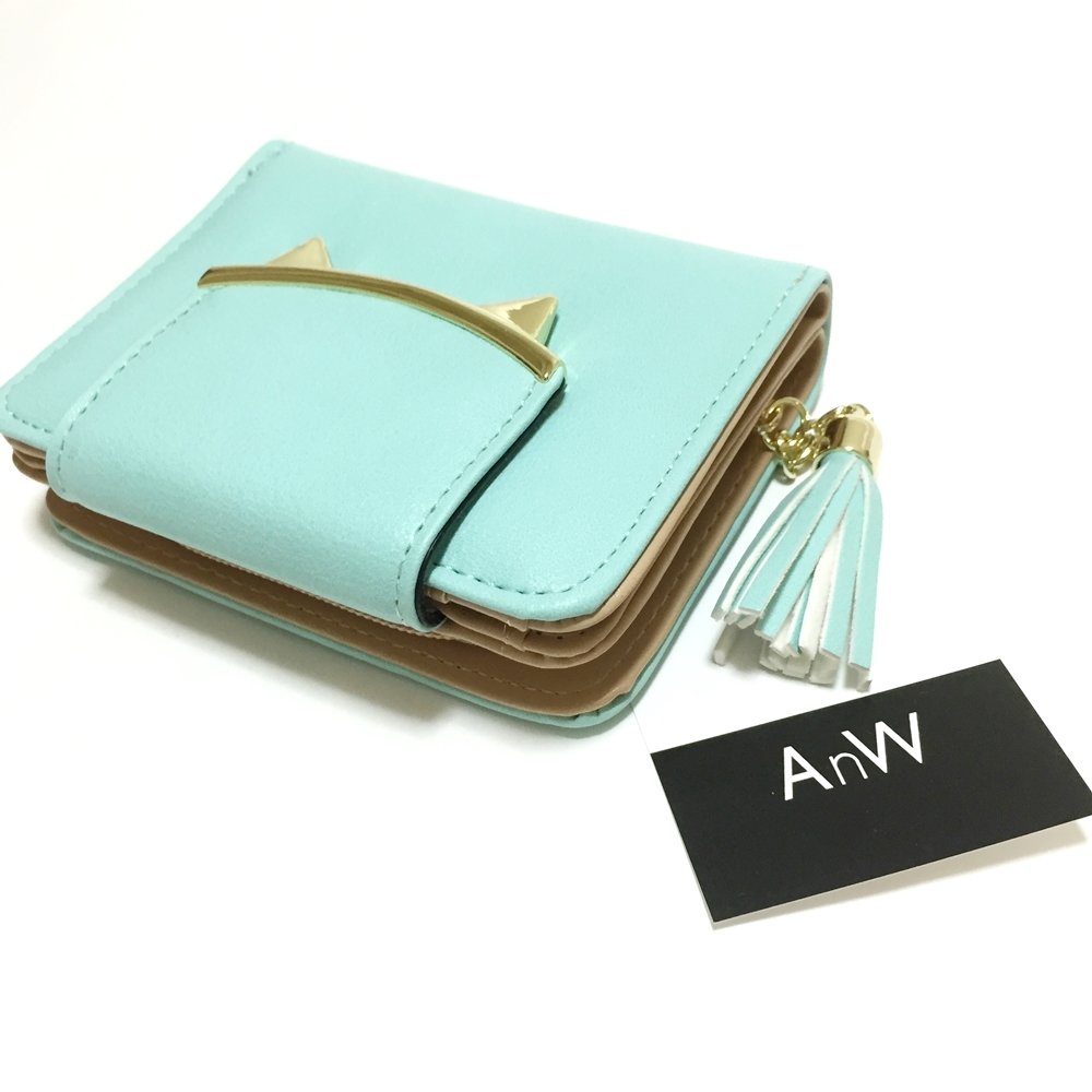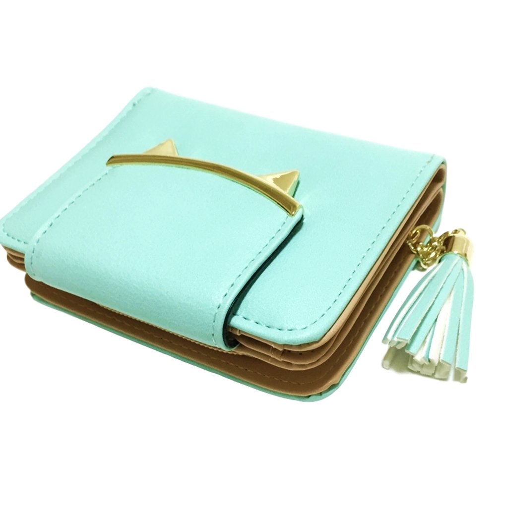 Cat ear motif and cute tassels ♪ High quality PU leather fold wallet.