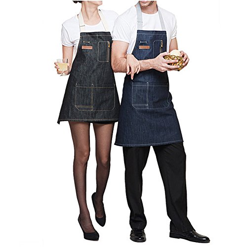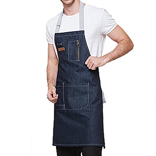 Shopline Kitchen Apron, Durable Cotton Denim Apron with Pockets for Women and Men, Suitable for Chef, Cooking Lover, Jewelry Studio (29.9 x 24.4 inch, Blue)