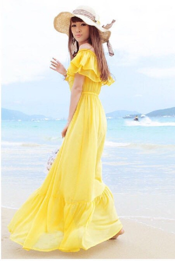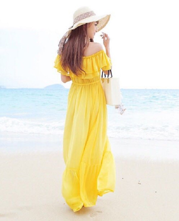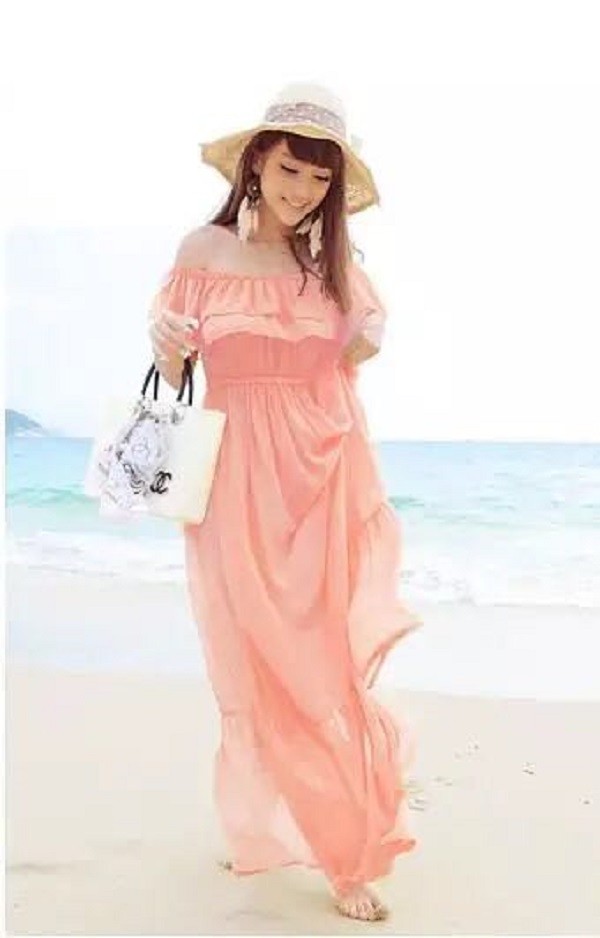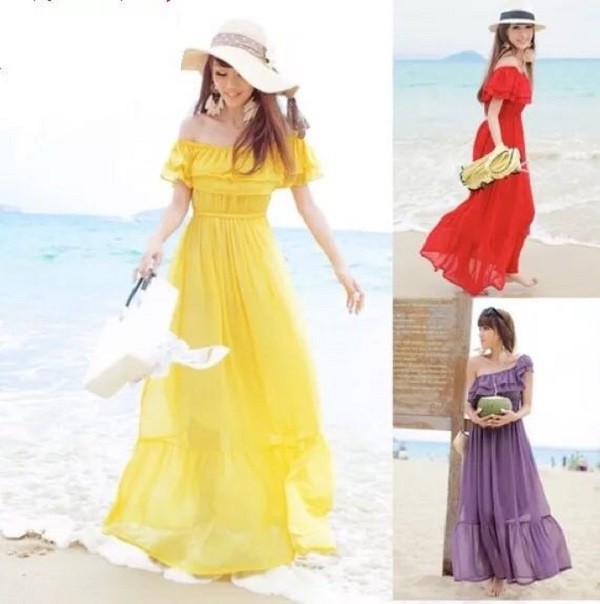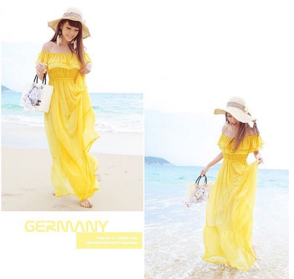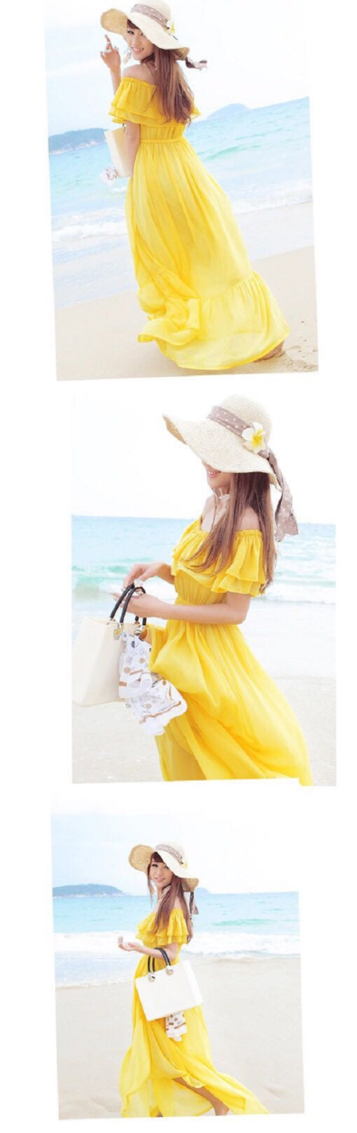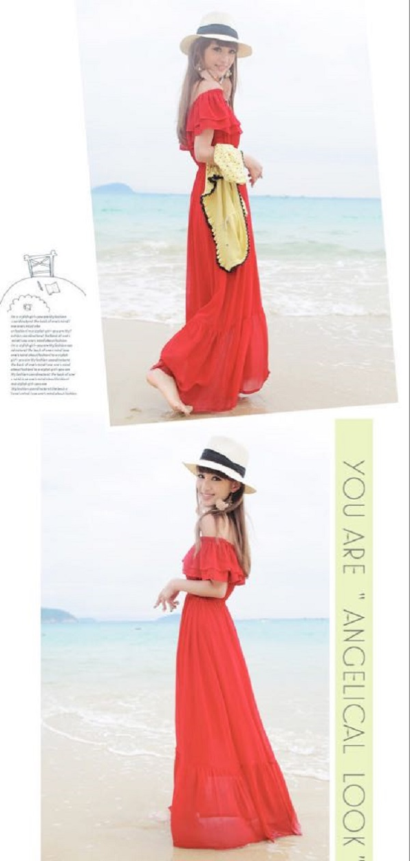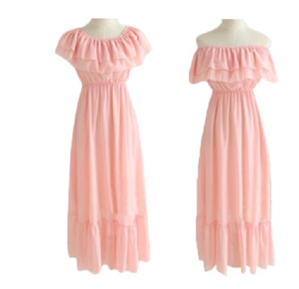4wayで着れるビーチ ロングオフショルワンピース4way 夏 ギャザー フレア シフォン マキシワンピ マキシ ワンピース ロングドレス 大きいサイズフリーサイズ肩幅 33ウエスト 56総長 120