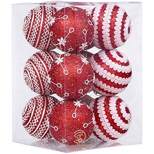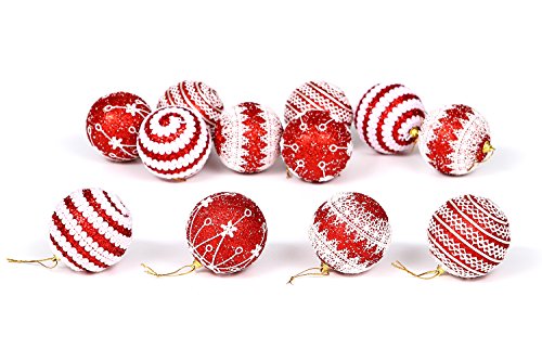 Sea Team 75mm/2.95" Shatterproof Foamed Plastic Christmas Ball Ornaments Glittering Xmas Balls with Delicate Lace Patterns - Set of 12 (Red)