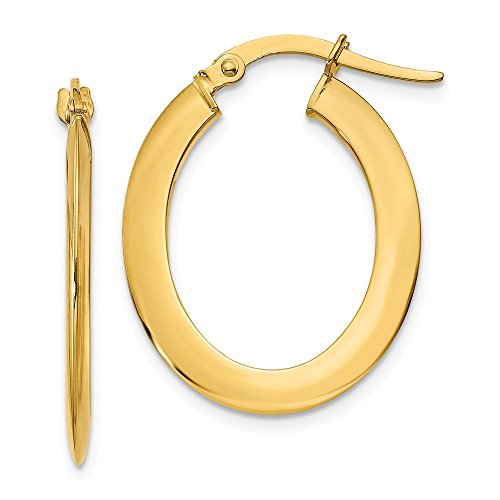 ICECARATS DESIGNER JEWELRY 14K YELLOW GOLD 1.5MM FLAT OVAL HOOP EARRINGS EAR HOOPS SET FOR WOMEN