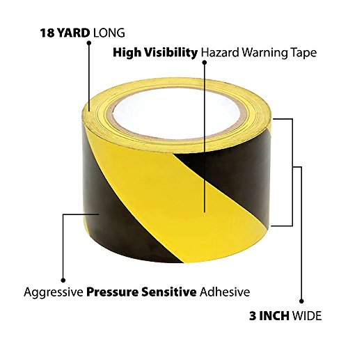 TAPIX Black & Yellow Hazard Warning Safety Stripe Tape • 3" x 18 Yds • Ideal For Walls, Floors, Pipes And Equipment.