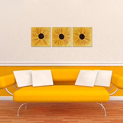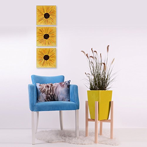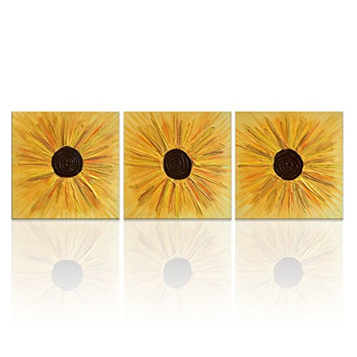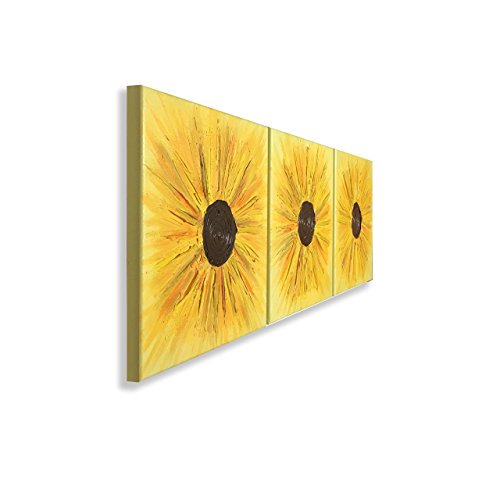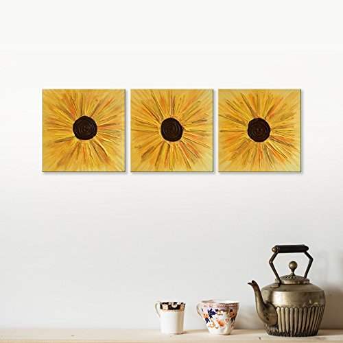These bright and fun sunflowers have a boho feel with a touch of Mexico. The stylized and unique heavy texture adds dimensional interest and flair. Each 10" x 10" canvas panel is hand crafted and painted on 1/2" stretched canvas with a wood frame. These come as a set of three for a total size of 30" x 10". Each canvas is sealed with a protective coating. Add some sunshine and whimsy to any space!
