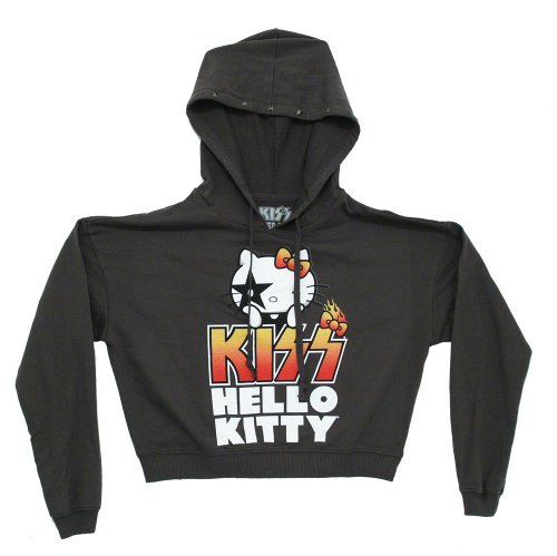*Color: Charcoal This is a junior's cropped hoodie, from the trusted Mighty Fine brand. Features a Hello Kitty Kiss design. Juniors hoodies are sized for teen girls and slim women.