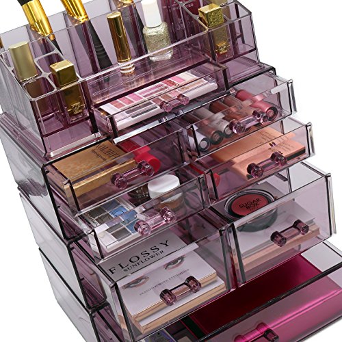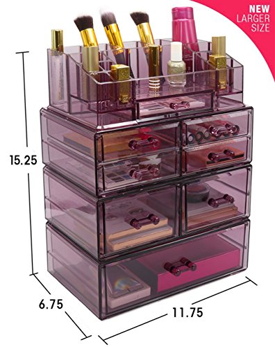 Sorbus Acrylic Cosmetics Makeup and Jewelry Storage Case Display Sets – Interlocking Drawers to Create Your Own Specially Designed Makeup Counter – Stackable and Interchangeable (Purple)