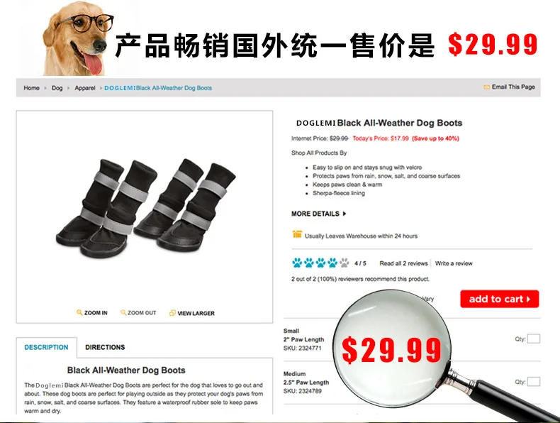 Item Name:DogLemi Anti-skid wear-resistant Dog Shoes Pet Rain Boots