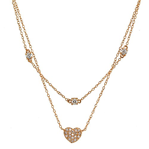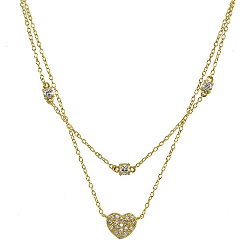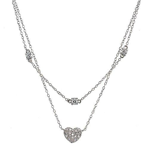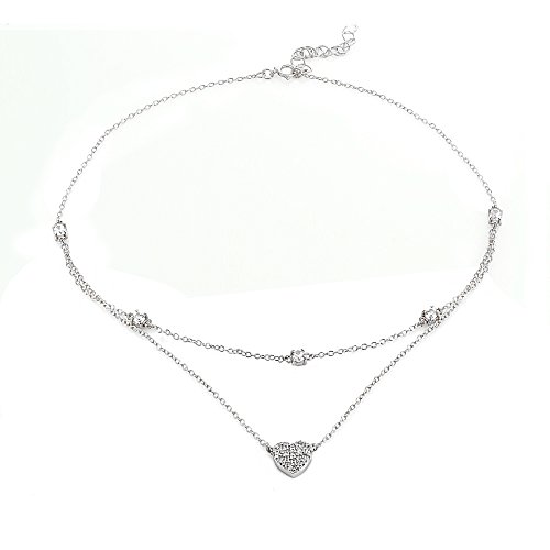 FEATURE - This attractive necklace features a thin choker chain and necklace; showcasing a fashionable layered style. There are 3mm cubic zircnoia stones stationed on the choker, and a cubic zirconia studded heart dangling off the necklace.