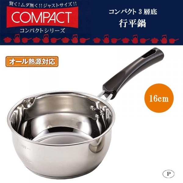 | 素材・材質 | 本体:ステンレス鋼(クロム14%) はり底(厚さ2.5mm):アルミニウム・ステンレス鋼(クロム11%) 取っ手:フェノール樹脂(耐熱温度150度) |