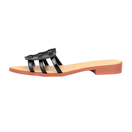 Women's Black Spliced Strap Leather Flat open toe Sandals Size Chart: Size Chart: Label size35 - UK3 - insole length 22.5CM Label size36 - UK3.5 - insole length 23CM Label size37 - UK4.5 - insole length 23.5CM Label size38 - UK5 - insole length 24CM Label size39 - UK5.5 - insole length 24.5CM Label size40 - UK6 - insole length 25CM Label size41 - UK6.5 - insole length 25.5CM Label size42 - UK7 - insole length 26CM Label size43 - UK7.5 - insole length 26.5CM 0