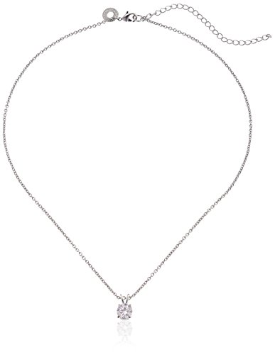 Rhodium-plated pendant necklace featuring round cubic zirconia stone in four-prong setting with split bail