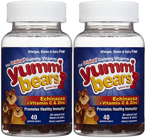 Yummi Bears Echinacea Plus Vitamin C and Zinc Gummy - 40 per pack -- 3 packs per case. Description Dietary Supplement Natural Fruit Flavors Americas #1 Childrens Vitamin Allergen & gluten free Complete Nutritional System Its not a surprise that childrens immune systems sometimes need a boost to keep their growing bodies strong and healthy. Great News! Yummi Bears are the perfect solution, because kids love the tasty fun and moms and dads appreciate the wholesome nutrition. Yummi Bears Echinacea + Vitamin C & Zinc naturally supports and nourishes your childs immune system. This unique blend of nutrients contains the perfect amount of herbs and vitamins to boost childrens defenses and keep them healthy all year round. Your friends at Hero are committed to delivering the highest quality, all-natural vitamins and minerals that help your kids get the nutrition they need every day. Other Ingredients Glucose syrup, natural cane juice, gelatin, citric acid, lactic acid, natural colors added (including black carrot, annatto, and turmeric), natural flavors, fractionated coconut oil and carnauba wax to help prevent sticking. Free of: Yeast, Wheat, Milk, Eggs, Soy, Gluten, Salt, Peanuts, Shellfish, Artificial Colors, Artificial Flavors, Salicylates and Preservatives. Warnings Product appearance may change over time due to natural color. This does not alter potency of the product. Although our products are manufactured in an allergen-free environment, federal law requires that we state that this facility also produces products that contain peanuts. Store in a cool, dry place, out of the reach of children. Do not use if safety seal is broken. Keep sealed for freshness. Shelf Life: 730 days