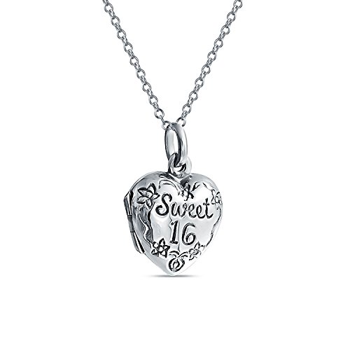 Heart lockets are timeless because you can carry two photos close to your heart, or give the perfect gift with this 18in sterling silver necklace. With a delicate sweet sixteen themed pattern that's easy to match, this 0.62in locket will be her new favorite.