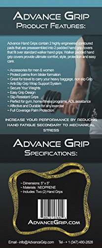-. Binding : Misc. -. Brand : Grip Power Pads® -. Feature : Multiple Purpose Grip pads are designed to endure highest intensity workouts to serve as Activities of Daily Living Aids. / These pads are designed to provide extra cushioning and biomechanical advantage for opening jars, ambulating with a Cane / Walker / Rollator, Carrying Grocery Bags & they Aide patients in griping rails during routine transportation transfers. / Maximize your lifting with padded support and protect your hands / Create the best workout for your fitness level -. IsAutographed : 0 -. IsMemorabilia : 0 -. Label : Grip Power Pads -. Manufacturer : Grip Power Pads -. ProductGroup : Sports -. ProductTypeName : SPORTING_GOODS -. Publisher : Grip Power Pads -. Studio : Grip Power Pads -. Title : ADVANCE GRIP - Multi Purpose Fitness Lifting Double Sided NEOPRENE Grips Gloves 1 Pair Weight Lifting Training Glove Workout Gym Palm Exercise Gloves Men & Women Grip Pad