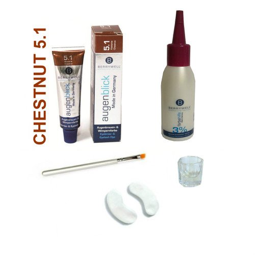-. Title : Berrywell Augenblick 5-PCS Hair Dye Kit: CHESTNUT (REDDISH) Color 5.1 Hair Dye Combo Set, Developer, Tinting Brush, Glass Mixing Dish, 60 pairs Non-Woven Eye-Pads from Germany
