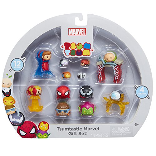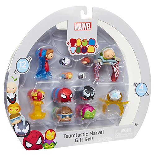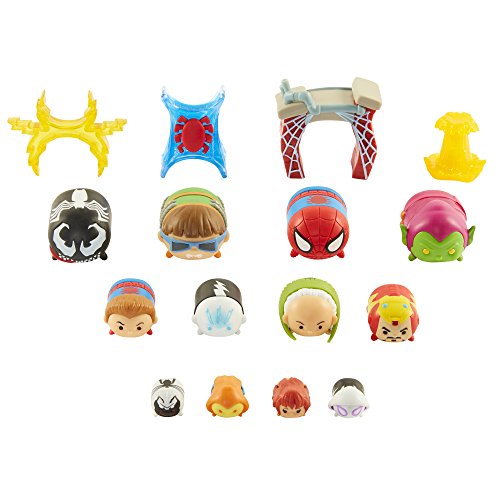 -. Feature : Collect, stack and display your favorite Spiderman Tsum Tsums! / Tsumtastic gift set includes 4 large, 4 medium with 4 accessories and 4 small figures! / Start stacking! / For ages 6+