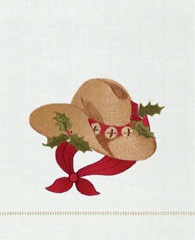 14"x22" Hemstitch Guest Towel, Christmas Cowboy Hat