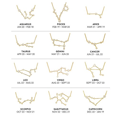 WOMEN'S JEWELRY: This women's gold plated zodiac necklace is incredibly stylish. Available in every zodiac, display your astrological sign by wearing this necklace with any type of outfit. This constellation necklace is available in all 12 signs: Aries, Taurus, Gemini, Cancer, Leo, Virgo, Libra, Scorpio, Sagittarius, Pisces, Aquarius, and Capricorn.
