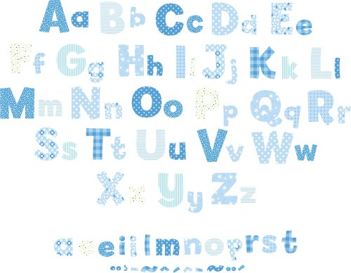 -. Feature : 55 alphabet nursery wall decals / Create an alphabet feature wall, label nursery furniture and create an alphabet border / Mix and match with coordinating designs from FunToSee's 'Blue Collection' / Perfect Baby Shower gift / 1 x uppercase set and 1 x lowercase set plus extra popular letters and accents