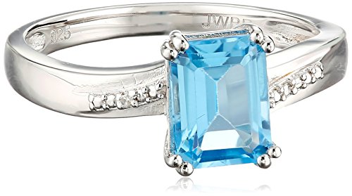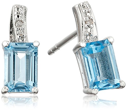 Give your sweetheart a luxurious gemstone gift set, without breaking the budget with the Sterling Silver Blue Topaz and Diamond Ring, Pendant and Earring Box Set. Resting form a classic 18-inch cable chain is an emerald-cut blue topaz stone that reveals magnificent blue color. The topaz is accented by natural white diamonds that fill the link, attaching the pendant to the chain. This same design is modeled on a pair of friction-back post dangle earrings and a simple size seven gemstone ring.Feature