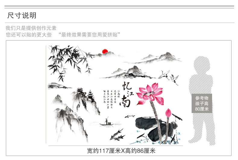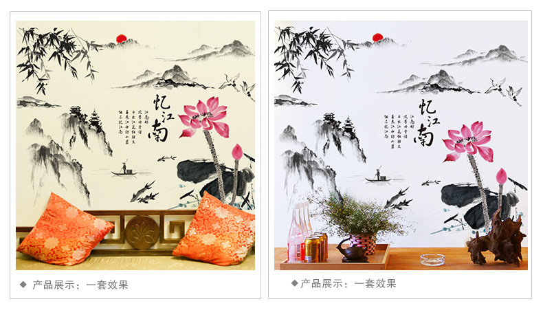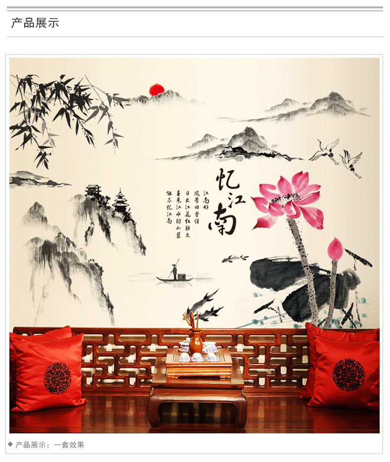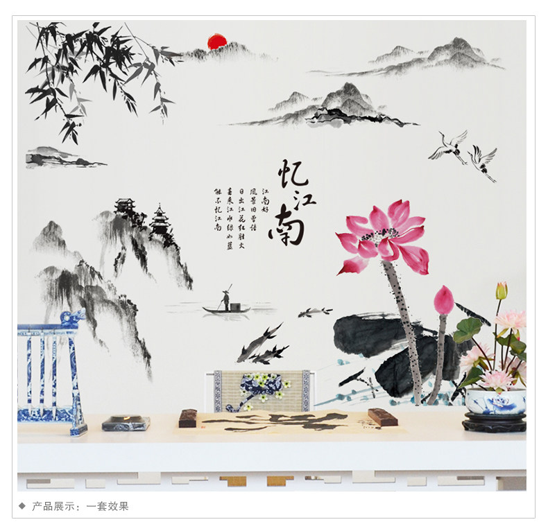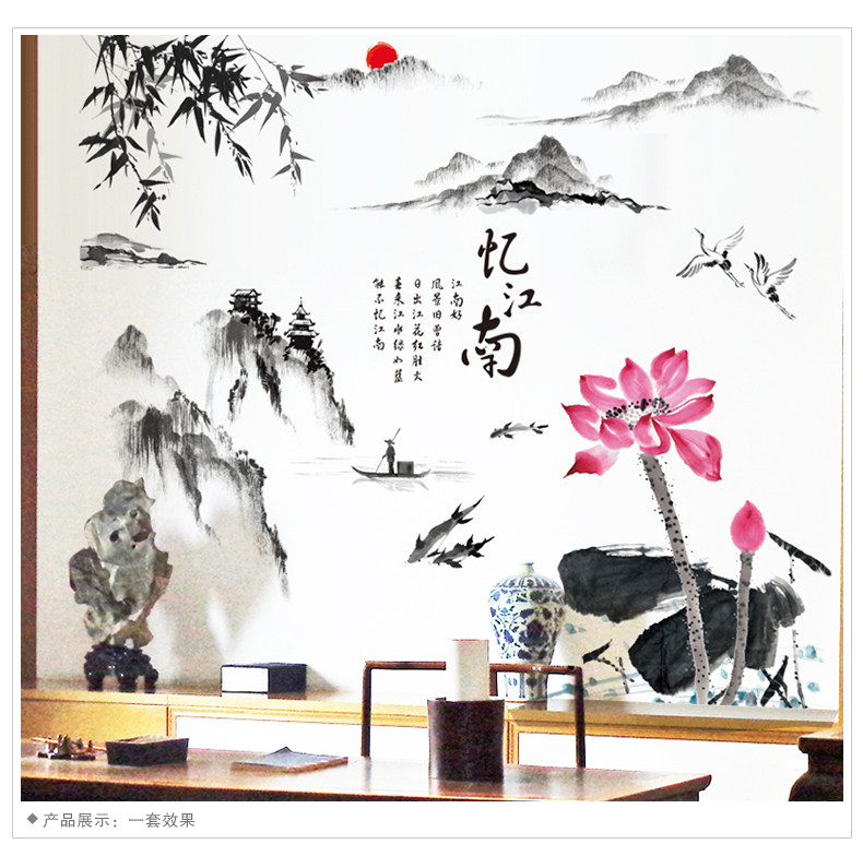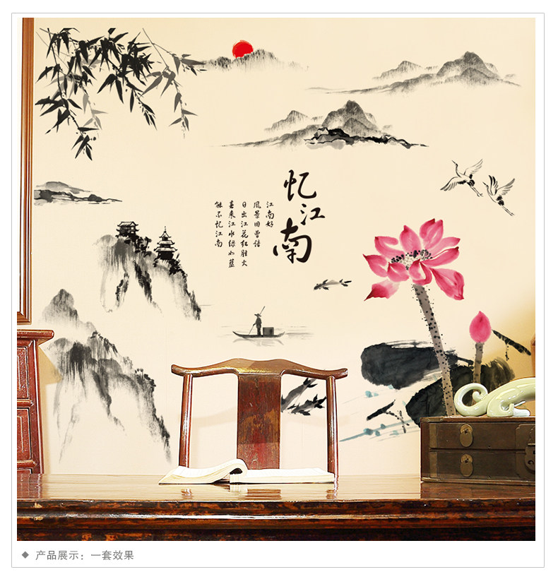 中国风墙贴纸贴画办公室书房客厅墙壁装饰品山水画水墨书法忆江南