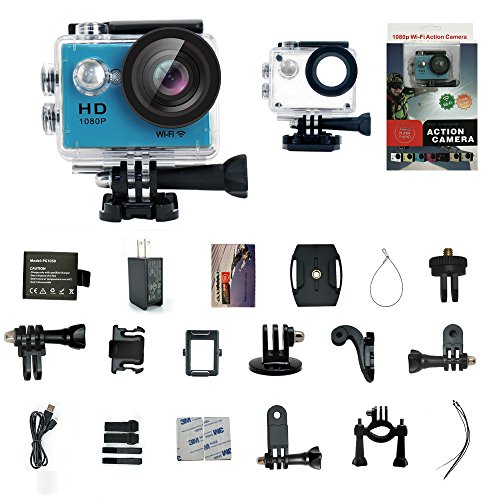 Yuntab HD 1080P 30fps 12 Mega Pixels Sport Mini DV Action Camera 2.0" LCD 170° Wide Angle Lens 30M Waterproof WiFi Remote Control Outdoor Sports (Blue)