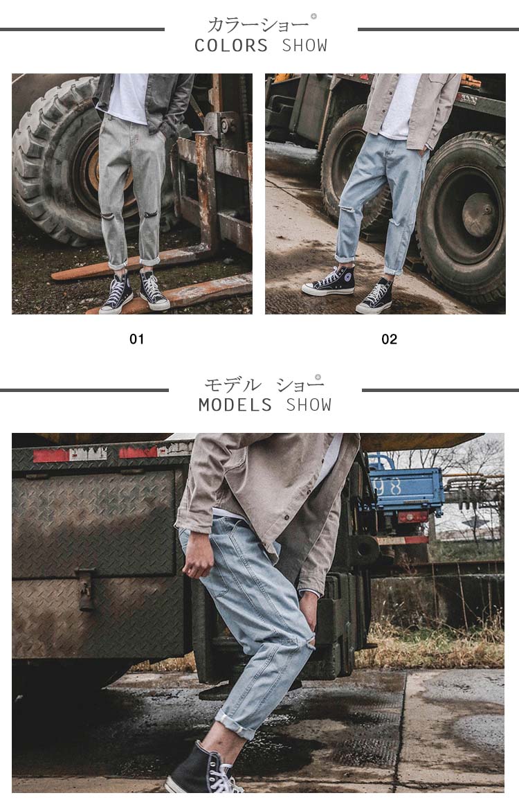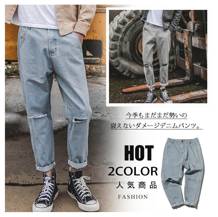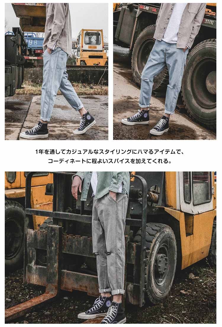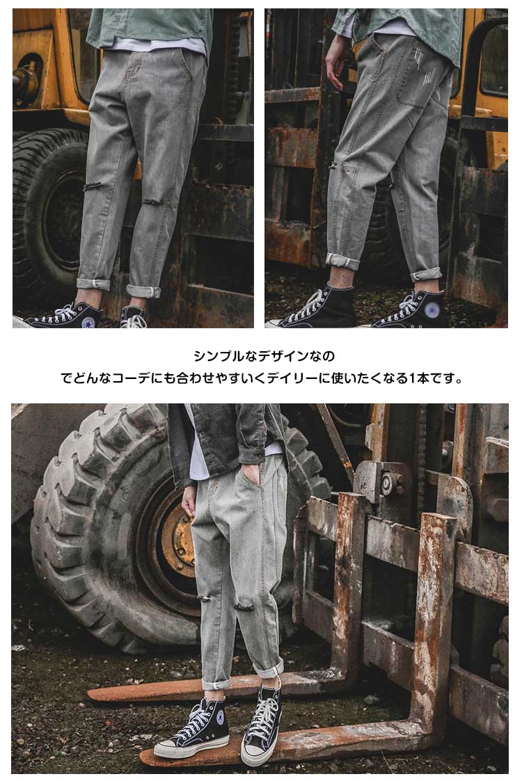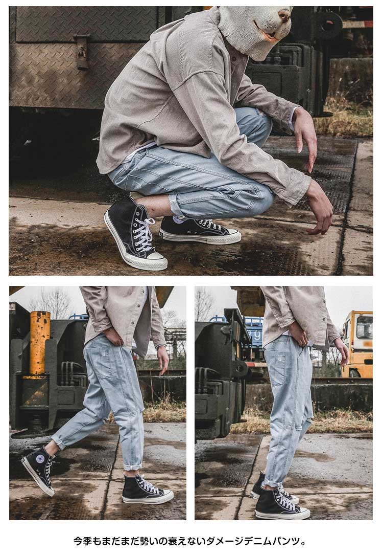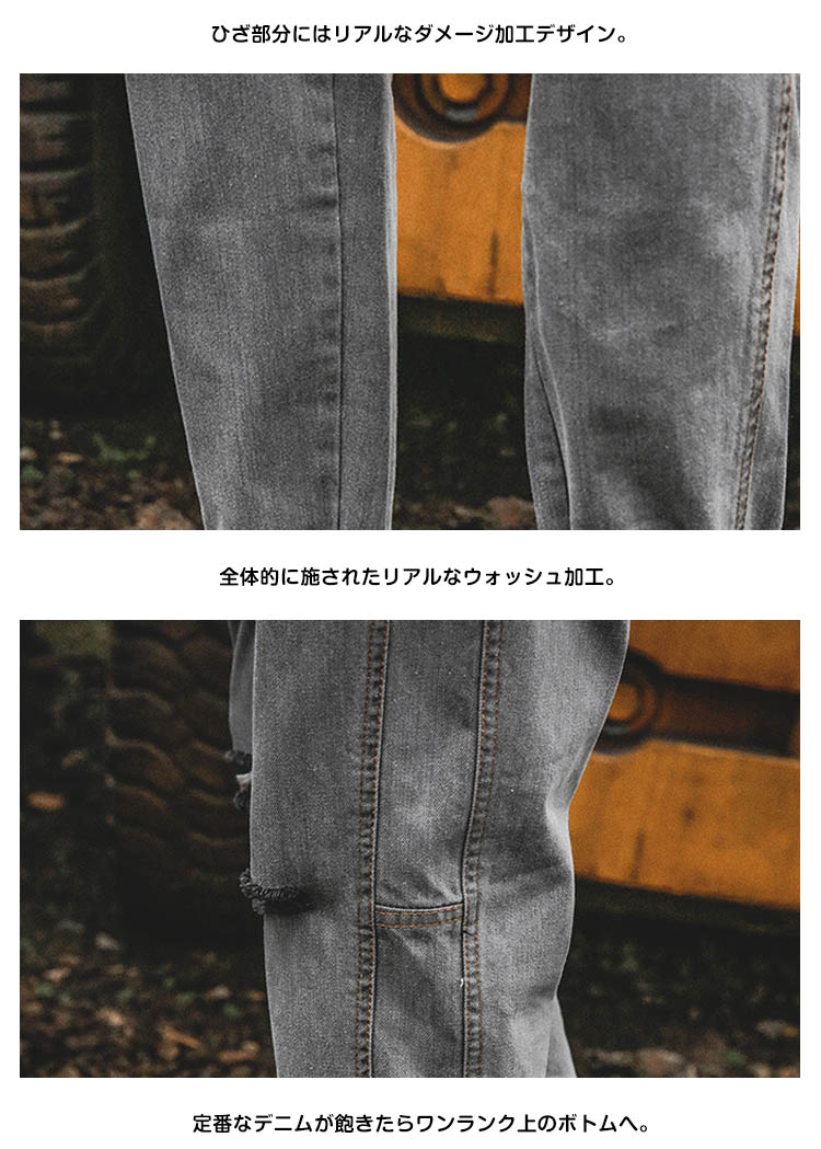 | 今季もまだまだ勢いの衰えないダメージデニムパンツ。1年を通してカジュアルなスタイリングにハマるアイテムで、コーディネートに程よいスパイスを加えてくれる。トップスを変えるだけで、色々な表情を見せてくれる所がポイントのひとつ。シンプルなデザインなのでどんなコーデにも合わせやすいくデイリーに使いたくなる1本です。 | |