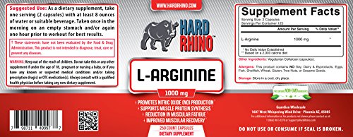 -. Binding : Health and Beauty -. Brand : Hard Rhino -. Feature : L-Arginine Capsules / Manufactured and Packaged in the USA. / In-House Lab Tested for Identity and Purity. / High Quality Ingredients at Value P.R.Ices. / FDA Registered Facility. -. Label : Hard Rhino -. Manufacturer : Hard Rhino -. ProductGroup : Health and Beauty -. ProductTypeName : HEALTH_PERSONAL_CARE -. Publisher : Hard Rhino -. Studio : Hard Rhino -. Title : Hard Rhino L-Arginine Capsules
