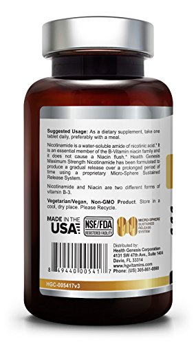 Nicotinamide is a water-soluble amide of nicotinic acid. It is an essential member of the B-Vitamin family and it does not cause a Niacin flush. Biophix Nicotinamide Sustained Release Extra Strength has been formulated to produce a gradual release over a prolonged period of time using a proprietary Micro-Sphere Sustained Release System.Feature