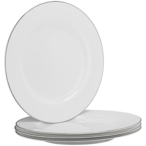 This glazed bone china showcases meals in a stately, matter-of-fact manner. A radiant addition to a classic design, these silver rimmed dishes provide a subtle flair to everyday dining. Lightweight and more durable than porcelain, they create an opulent setting.Feature