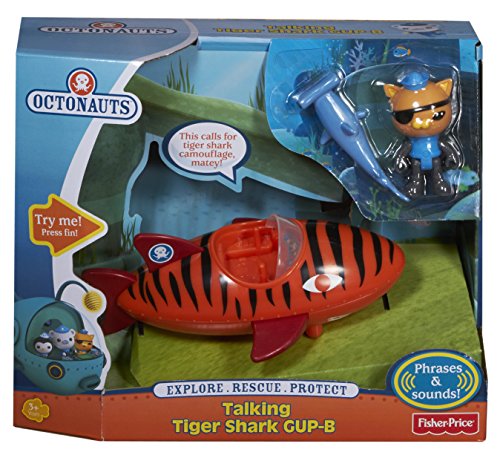 -. Binding : Toy -. Brand : Fisher-Price -. EAN : 0885612375513 -. Feature : Explore, rescue and protect just like the Octonauts with a talking Gup-B! / Talking Octonauts vehicle! / The Gup-B is in Tiger Shark Mode and features fun sounds and phrases! / Includes a Kwazii figure and a creature to rescue / Not intended for water play -. IsAdultProduct : 0 -. ItemPartNumber : CDP63 -. Label : Fisher Price - Import -. Manufacturer : Fisher Price - Import -. Model : CDP63 -. MPN : CDP63 -. PackageQuantity : 1 -. PartNumber : CDP63 -. ProductGroup : Toy -. ProductTypeName : TOYS_AND_GAMES -. Publisher : Fisher Price - Import -. Studio : Fisher Price - Import -. Title : Fisher-Price Octonauts Talking Tiger Shark Gup-B -. UPC : 887961048247 -. Warranty : No Warranty