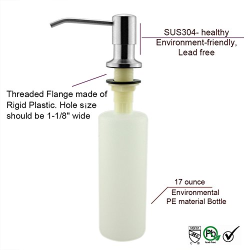 EASY TO INSTALL AND USE- Easy press dispenser offers an easy-dispensing mechanism. This soap dispenser is extremely easy to install in just a few short minutes,And simply remove the dispenser head and refill with liquid soap-you do not have to remove the bottle