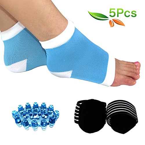 5Pcs items:a pair of Compression Plantar Fasciitis and Ankle Support, a pair of Cushioned Arch Support and a Foot Massager