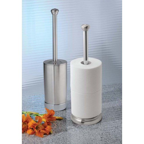 InterDesign York Free Standing Toilet Paper Holder for Bathroom - Brushed Stainless and Chrome
