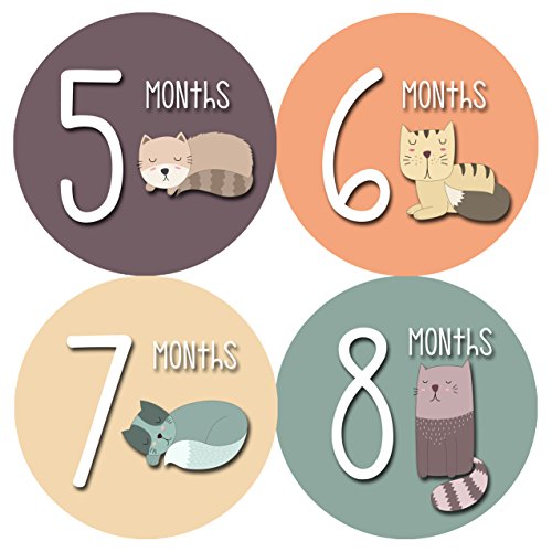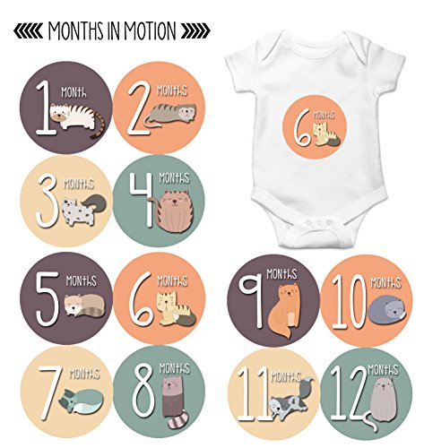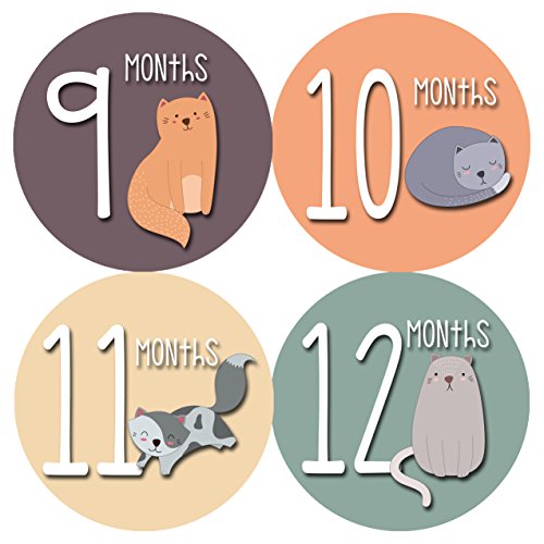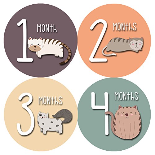 Monthly Baby Stickers by Months In Motion | 12 Month Milestone Sticker for Newborn Babies Cats Kitten (Style 1174)