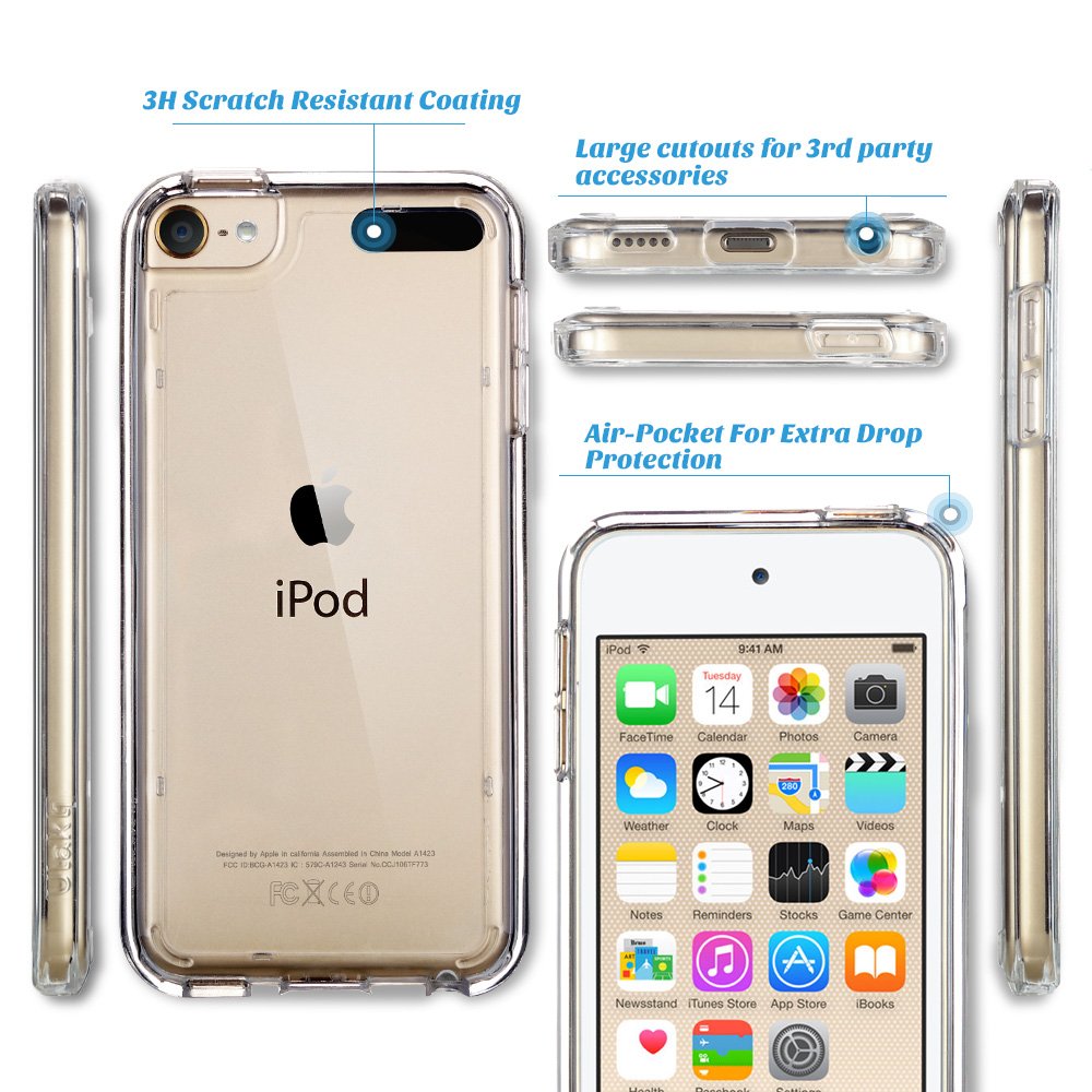 [ULAK] iPod touch 6 / iPod touch 5 case Silicone soft bumper Clear hard back Shock absorbing slim Light weight scratch prevention (clear)