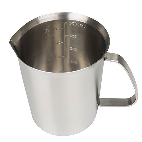 Sissiangle 18/10 Stainless Steel Measuring Cup,Frothing Pitcher with Marking with Handle for Milk Froth, Latte Art (16 Ounce/ 0.5 Liter)