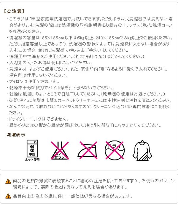 ●洗えるラグ 丸洗い 軽量 スミノエ 130 185