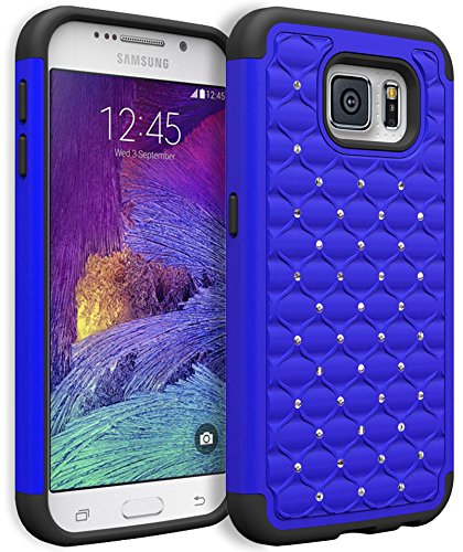 Galaxy S6 Case, Bastex Heavy Duty Hybrid Protective Armor Case - Soft Black Silicone Cover with Teal Studded Rhinestone Bling Design Hard Case for Samsung Galaxy S6 G920