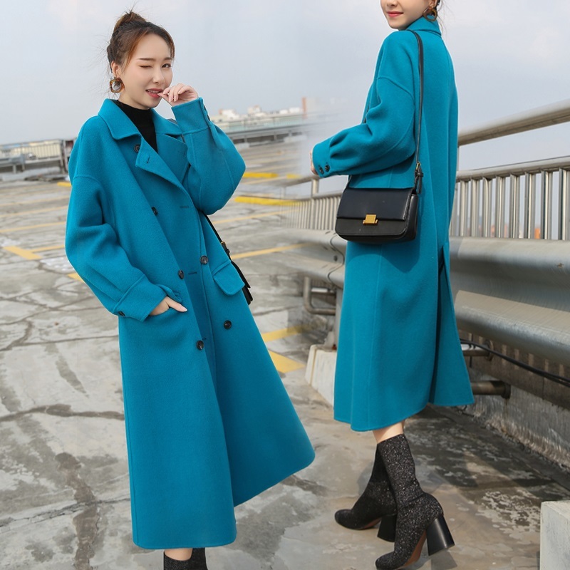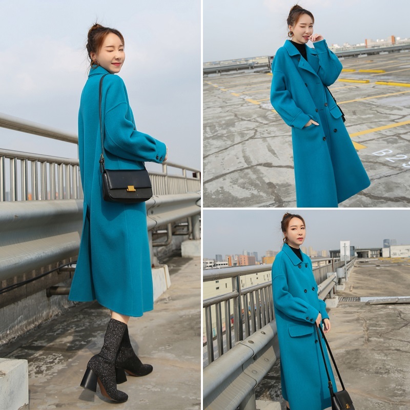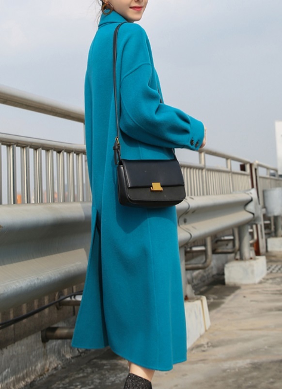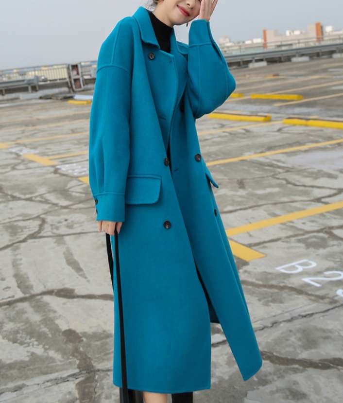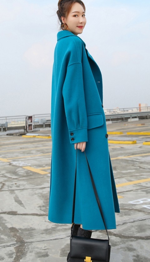 華やかなブルーが目を引くきれいなフォルムが印象的なロングコートです。