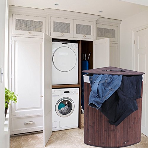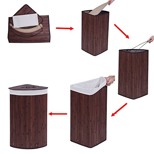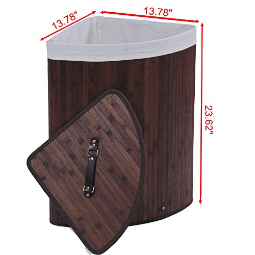 Binding : Kitchen Product Description Bamboo's ductility makes the laundry basket durable. Delicate design makes it beautiful that helps to decorate your room and make your room elegant and nice. Specification: Material:Bamboo Product Size:13.78" X 13.78" X23.62" (35X35X60CM) Product Weight:3.2LB(1.45KGS) Color:Dark Brown Product Shape:Triangle