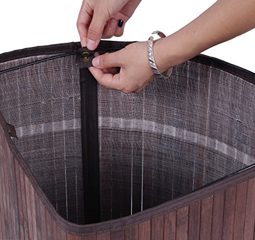 Component: 1. 1 X Bamboo Body 2. 1 X Metal Ring 3. 1 X Wood Bottom Board 4. 1 X Removable Lining Assembly instruction: 1. Firstly pls inspect if all the parts are completed: lid liner, iron circle,wooden board, bamboo body. 2. Put the wooden board into bottom and they will be hold by iron. 3. Put the iron circle from bottom to top and then fix it by 4 buttons on the top. 4. Put the liner into bamboo hamper. Attention: Please keep it away from wet floor, avoid mildew. 0