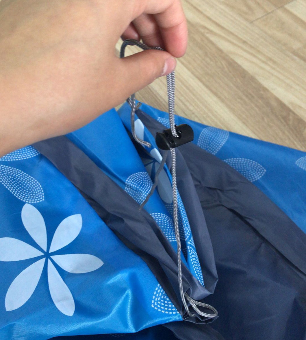 紐を縛ることで、すぐに片づけが終わります。