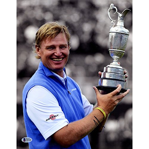 Ernie Els Signed 11x14 Claret Jug Photo Facing Right Dark Background Beckett