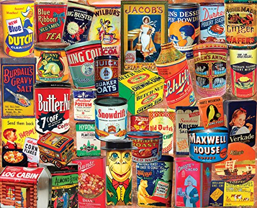 -. Feature : Lois Sutton has assembled a wonderful grouping of tins and containers which were a common sight in kitchens past and are now often considered to be collector's items / Artist Lois B. Sutton is the creator of collage-like puzzles that are full of detail, bright colors, and often vintage themed / Every White Mountain Puzzle is proudly manufactured in America with a 100% customer satisfaction guarantee / All our puzzles contain unique interlocking pieces that are made of sturdy blue chipboard on recycled paper / 1000 piece puzzles measure 24"x30". The larger pieces are easier to handle for the whole family