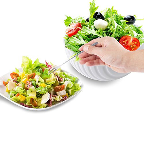 - Only The Best Quality - Our salad strainer bowl made with 100% food grade material, BPA Free, phthalate free, non-toxic, eco-friendly, safe, durable, FDA and LFGB approved. Our stainless steel fruit fork made from high quality 18/10 stainless steel which is durable, nontoxic, lead free,dishwasher-safe. Please feel assured to use our salad cutter chopper,fruit fork to make and enjoy your fresh salad.