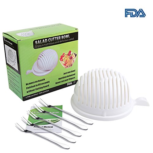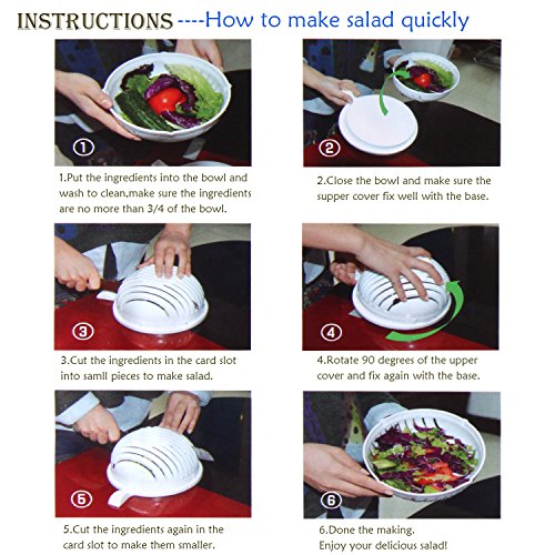 - Save Your Time to Make Salad - Tired of constantly cut fruits and vegetables to make salad? We are too! Say goodbye to nasty tedious cutting work with our salad cutter bowl. Finish your salad with our salad maker bowl only 60 seconds. It is awesome 1 minute salad maker make you enjoy a nutritious and delicious salad in short time.