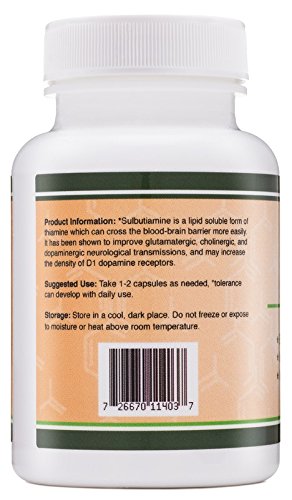 -. Binding : Health and Beauty -. Brand : Double Wood Supplements -. EAN : 0726670114037 -. Feature : BOOST YOUR MOTIVATION - Sulbutiamine enhances motivation and may help give you the drive you need study for an exam or get a project done at work. / LASER SHARP FOCUS - Stay focused on school or work for longer periods of time. Sulbutiamine is an excellent focus nootropic. / ENHANCE MEMORY - Remember more information for your exams, forget less deadlines at work, no more losing your car keys. / MADE IN USA - This nootropic is manufactured right here in the USA, using high quality, pure, Sulbutiamine / 100% MONEY BACK GUARANTEE - We don't want anyone to feel ripped off and provide a no questions asked money back guarantee. -. IsAdultProduct : 0 -. Label : Double Wood Supplements -. Manufacturer : Double Wood Supplements -. MPN : DW2 -. PackageQuantity : 1 -. PartNumber : DW2 -. ProductGroup : Health and Beauty -. ProductTypeName : HEALTH_PERSONAL_CARE -. Publisher : Double Wood Supplements -. Studio : Double Wood Supplements -. Title : Sulbutiamine (Nootropic Supplement) Made in USA - 50 Capsules 200mg -. UPC : 726670114037