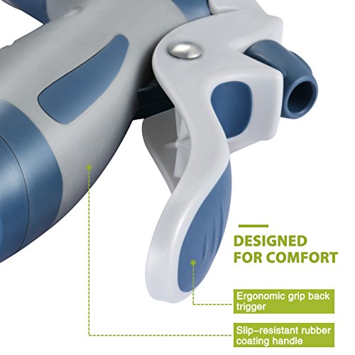 - ERGONOMIC COMFORT HANDLE: A soft rubber coated handle makes this high pressure hose nozzle comfortable to hold. The ergonomic grip back trigger is easy to squeeze, making it effortless to do your spraying job.
