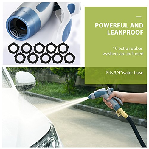 VicTsing Garden Hose Nozzle, Car Wash Gun Fire Spray Nozzle with Multi Patterns, High Pressure Hand Sprayer for Car Washing, Plant Watering, Pet Bathing, Sidewalk Cleaning (10 Free Gaskets)